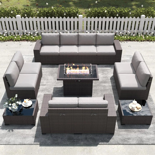 13 Pieces Outdoor Patio Furniture Set Sectional Sofa 44" Fire Pit Table