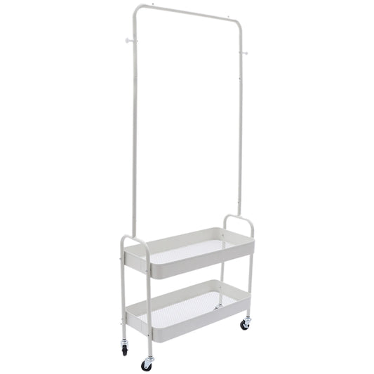 2-In 1 Clothing White Rack With 2 Tier Metal Basket Rolling Storage Cart
